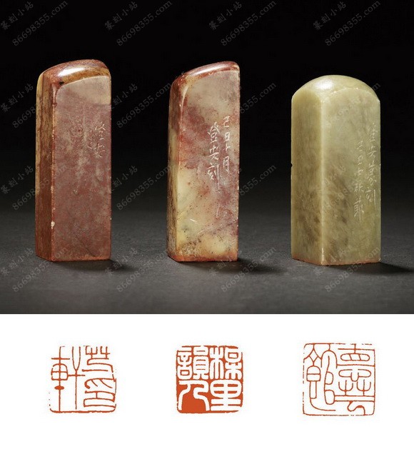 边款:1.己丑十月,登安刻。 2.登安制。 3.登安篆刻,己丑中秋节。