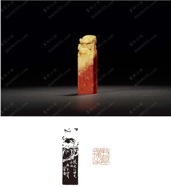 1742 韩登安刻子母牛钮寿山高山朱砂石章