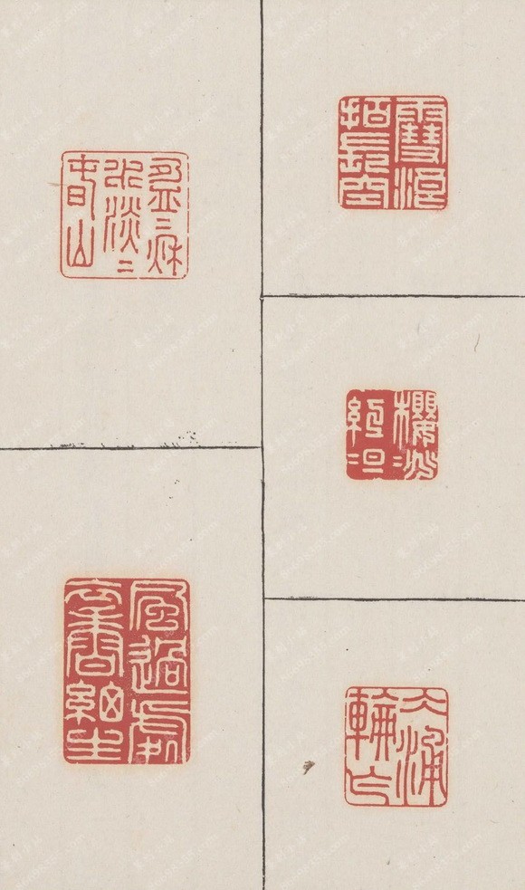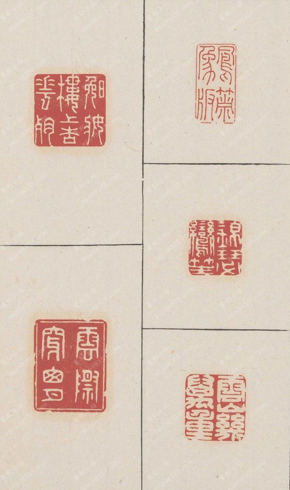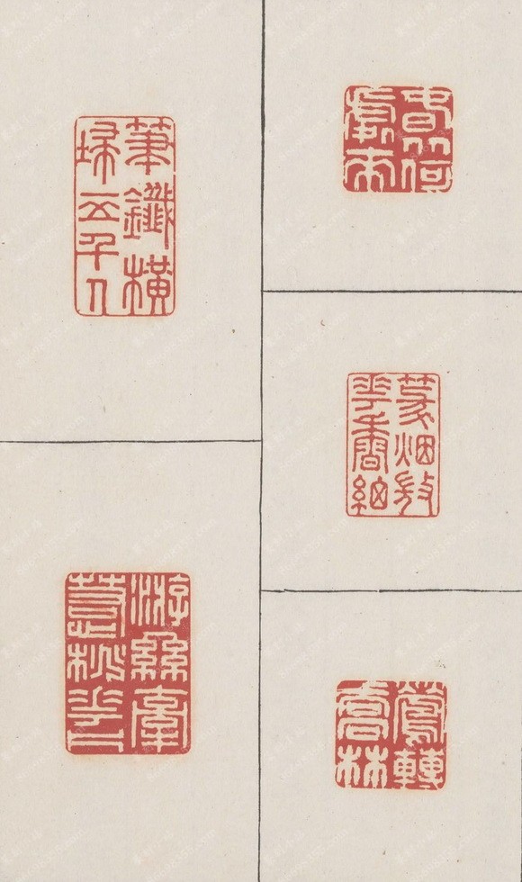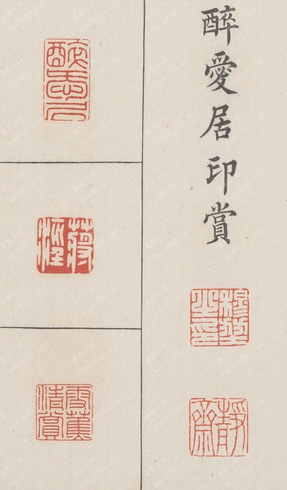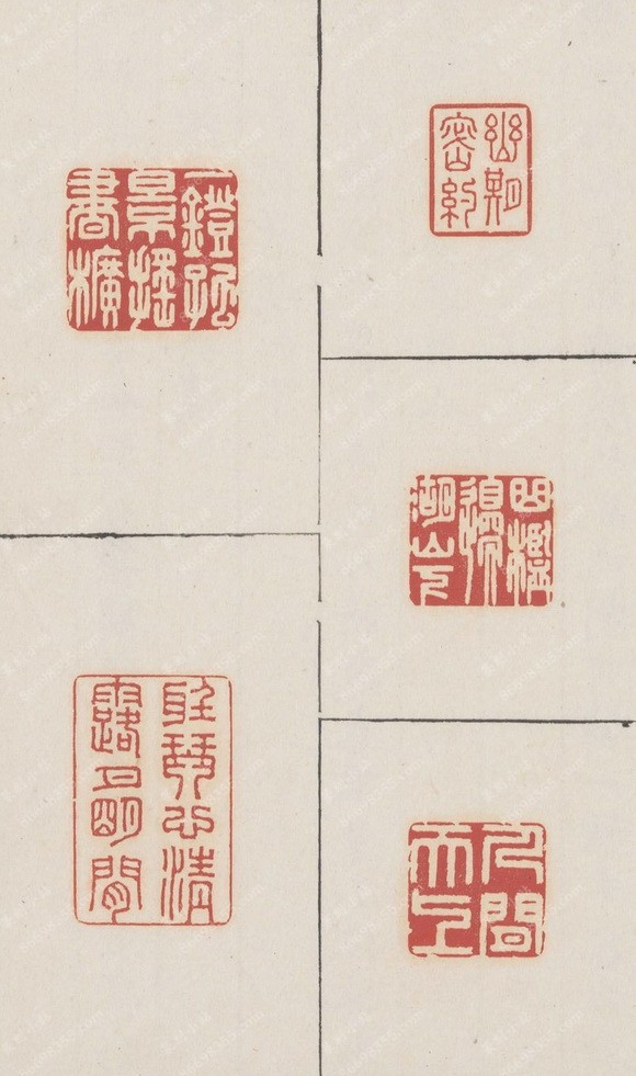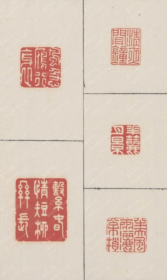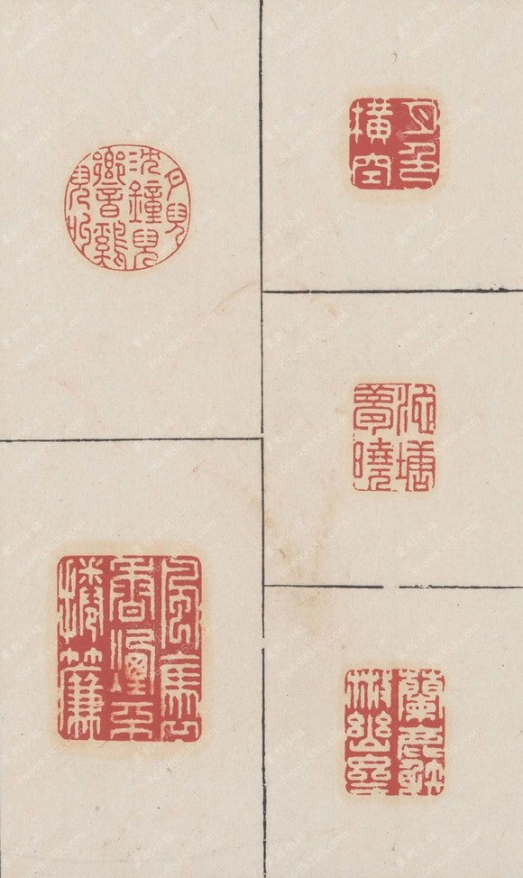 《醉爱居印赏》原含二种,成于一七四零年,印文皆载《花影集》句,故又名《花影集印赏》。后王祖慎再择《西厢》百句,请王睿章篆刻,成《西厢百咏印赏》,约成书于一七四六年。后又并二书成《醉爱居印赏》,前二册及后一册分别皆有序跋。此套为其中的《西厢百咏印赏》。