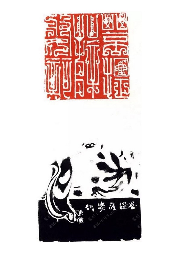 陆康十六岁师事陈巨来,受其诲教很规矩地从《十钟山房印举》入手,潜心把陈家润妍隽秀的风格学到极致。而他又可以旁逸斜出,别有自家面貌。不论取法古玺、秦铸或是汉凿,他都各有心得,尤以元朱文和鸟虫篆为人称道。