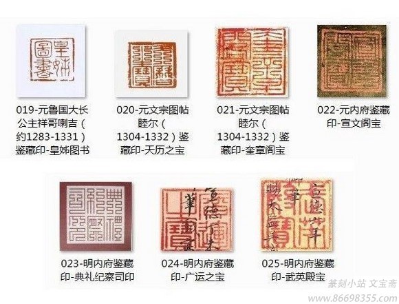 鉴藏印大致可分为两类:一类是用于书画鉴赏、审定与收藏的印章;一类是用于图书典籍收藏的印章。自唐宋以降,同一幅书画经过历代收藏家的鉴藏,可能在上面钤盖了大量的鉴藏印章,形成了传承有序的印章系统——印章,也就成了鉴定书画真赝的一个艺术元素。下面我们看下马未都老师整理的一些鉴藏印,由篆刻小站转发。