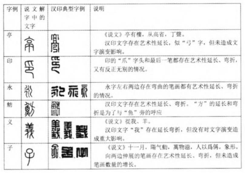笔画的延长和弯折是汉印文字为了适应美学因素、为了对称,或者为了平衡印面的空间而发生变化的重要证据。延长和弯折的文字多产牛在笔画和结构较为简单文字当中,其目的是在印面上符合章法或者与其他笔画较多文字产生对称效果而进行的变化,但它们都没有造成笔画增长和文字的讹变。
