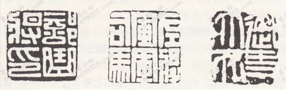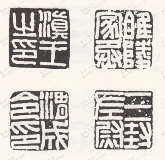 这一时期是官印摆脱秦印影响, 逐渐趋向成熟的发展过渡阶段。 这时的主要特点是: 印面已不假界格, 但仍分四格。 印文结体紧密严整, 笔画取圆势, 有的尚遗秦篆遗风, 同时也出现汉武帝时那种方正宽博的体态。