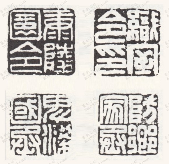 早期印文多圆笔, 较为粗壮圆浑自然; 中期渐趋方笔, 也出现屈曲盘缠的现象。 具体分以下几个阶段: