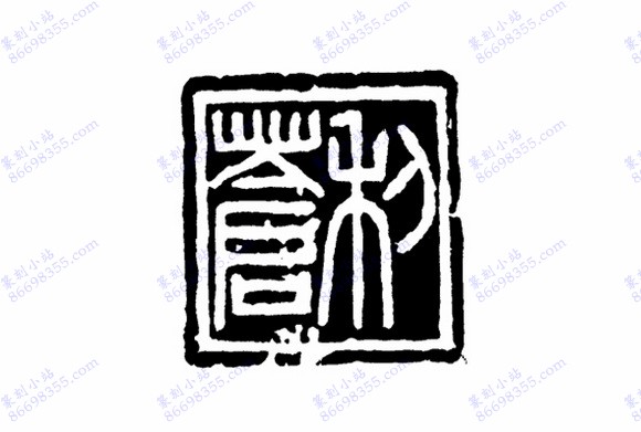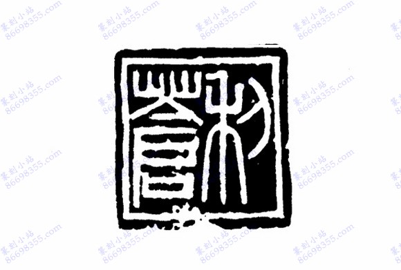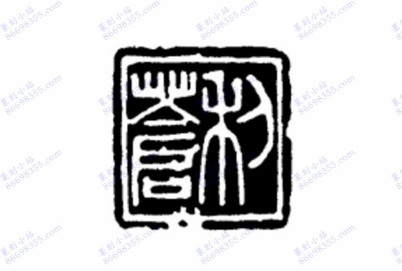 我临此印是在屏幕上先把原作图片缩到与我的 章料一样的尺寸,然后把香烟外包装的透明塑料纸 剪下一块,再用电工胶布将其贴在电脑屏幕上。用细 尖油性记号笔双钩原印。