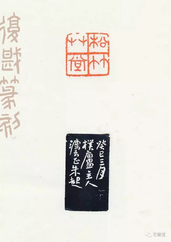 释文:松竹草堂。边款:癸巳(1953年)三月朴庐主人法正 朱起