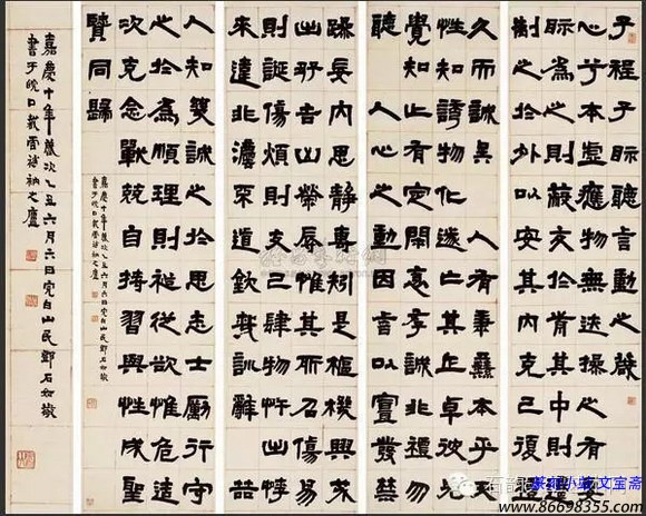 【邓石如乙丑(1805)年作 隶书《言箴》 (四件) 屏轴 纸本】