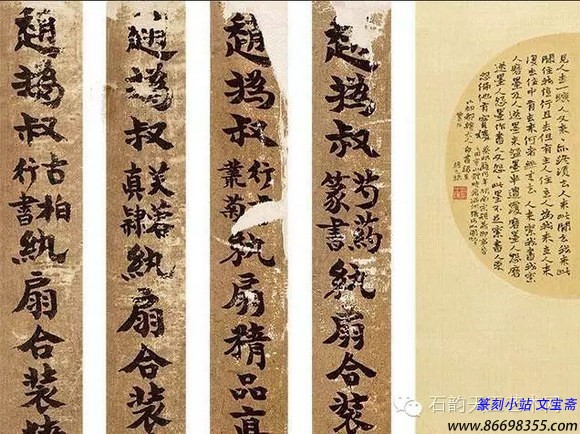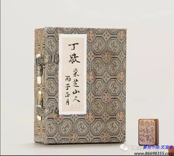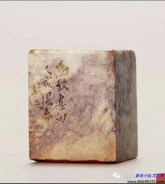 款式,指篆刻印章边款、上下款、题跋等文字的安排与样式。三分钟篆刻小站教你看懂印章边款,篆刻边款由来,款字有大有小,体例有行有楷、有篆有隶,一般多阴文。丁敬用单刀刻款,朴拙浑厚;邓石如用双刀刻篆,势如贯珠;吴让之则用菱形刀刻款,别有笔趣;晚清杰出艺术家赵之谦对边款的刻治更为讲究,集前代大成,取法六朝造像碑刻,开创了用阳文制款之先河,如其所刻的“仁和魏锡曾稼孙之印”的边款。1994年冬,我在北京拜见了时任西泠印社社长的赵朴初先生,赵老用放大镜一边仔细观看我为他敬刻的印章边款,一边风趣地说:“篆刻款式很重要,它既是作者、年代、创作背景的考释,又是一幅精美的袖珍式书法,你研究金石篆刻,可别忽视它的运用。”