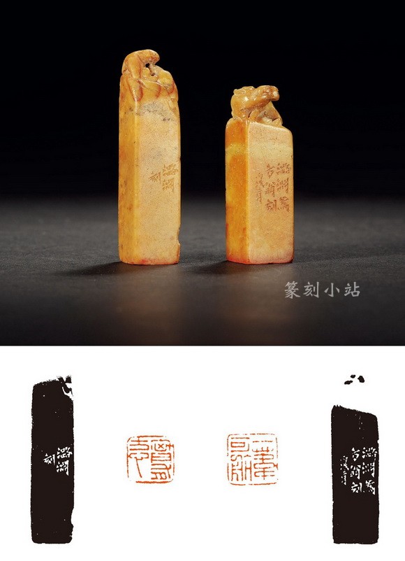 1640 叶潞渊刻寿山石古兽钮闲章二方