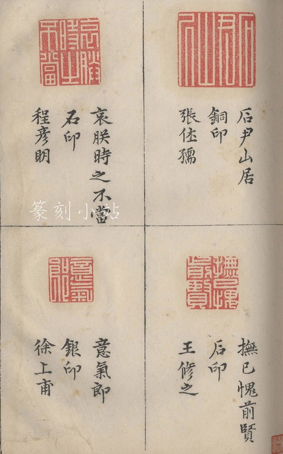 跋承清馆印谱续集(薄澹儒撰)、印谱续集跋(钱龙锡撰)、跋印谱续集(王志竖撰)、题张长君印谱续集后(陆献明撰)、跋印谱续集(王瑞璋);