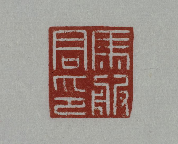 青玉鼻钮“马服君印”,明,印面2.1×2.0厘米,通高1.5厘米。清宫旧藏。