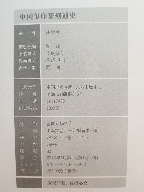 一方印,一部中国历史;一方印,一部中国文化;一方印,一个传承。 过去从来没有一部关于玺印篆刻之历史著作出现,这次东方出版中心感谢孙慰祖先生集十四年之心血,终于完成这部有图有字的经典艺术作品呈现给世人。