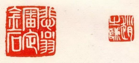 赵之谦刻印的流传情况,到现在为止,据不完全统计,大约只有三百五十余方,其中一部分是存有原印的,一部分只有拓本。最近虽有新发现的原印,如白文“刘铣之印”和朱文“松庭”这一对,石质是花红寿山。前者署款“ 叔仿老姜”,后者未署款。也有新发现的拓本,如白文“缪德棻印”、朱文“芷汀”,这一对,可惜没有拓存边款。像这种发现,究属少数。统观流传的拓本,大都因拓边款较不易,没有拓存的居多。把这些新发现的加起来,也不过三百六十方左右。至于这些印的分布状况,就我所知,只有故宫博物院、辽宁省博物馆、天津市艺术博物馆、上海博物馆、浙江省博物馆、西泠印社等几家,其中以上海博物馆所藏的为最多,约有二十多方,余者只一二方,或十多方不等。藏于私人手中的大约近二百方,已流到海外的,大约有一二十方,其中最著名的如赵之谦悼亡所刻的两方巨印,一是白文“俯仰未能弭,寻念非但一”,二是朱文“如今是云散雪消,花残月缺”,均为四面长跋,早在40年代就流入日本了。