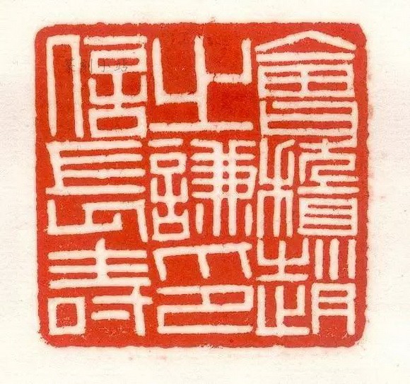 第四,赵之谦手书他人代刻。这一类我认为不能作为伪作看待。古代有许多碑版,都是书家手写以后,由刻工镌刻而成,如唐四家颜、柳、欧、褚各帖即是,没有人认为伪作,所以这一类手书代刻,仅次于真迹。其中白文“餐经养年”一印,印面及四面画格阳文魏书边款、顶端佛像,均为赵之谦手写手绘,由其弟子钱式代刻而成。白文“俯仰未能弭,寻念非但一”及朱文“如今是云散雪消,花残月缺”一对巨印,印面及八面画格阴文魏书边款,俱属赵氏手书,据傅栻手拓《二金蝶堂印谱》这两印拓本上的手注:“右两印乃 叔手篆,钱少盖刻未半而卒,汪述庵少尉续成之,故附于末。”可见当时的鉴家也认为是下真迹一等,没有视作赝品。另外还有朱文巨印“郑斋”、“滂喜斋”及“攀古楼”,也是赵之谦手篆,他人代刻者。不能作伪印视之。