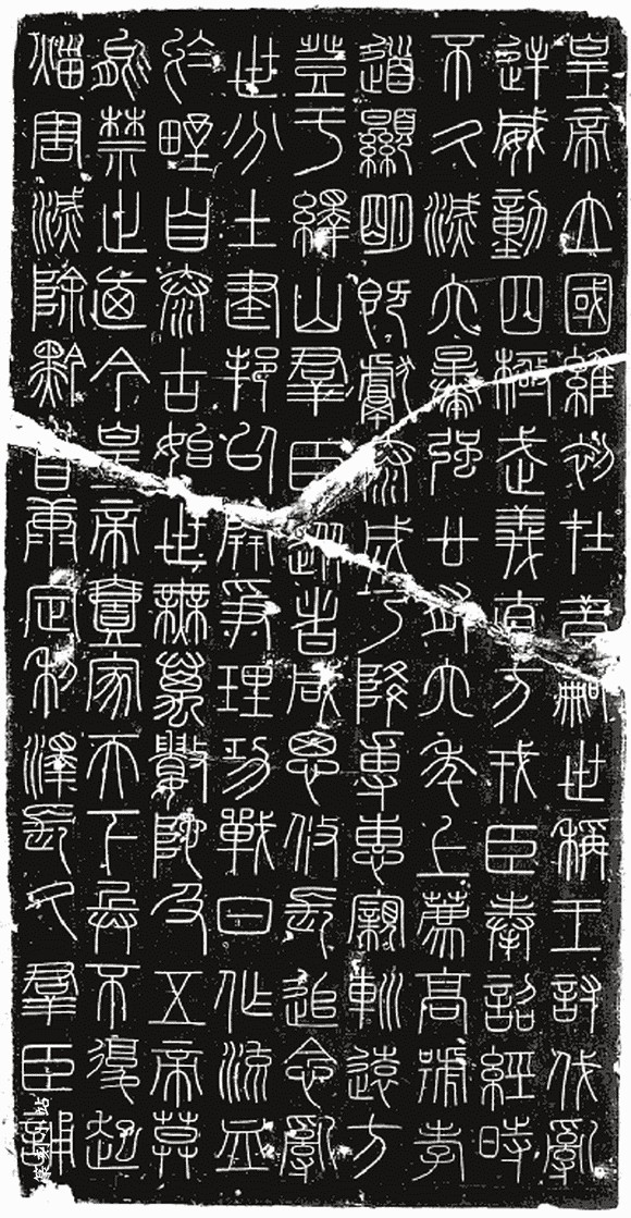 秦始皇在统一中国后的十余年间,为了加强对全国的控制,先后五次远途巡视各地。秦王政二十八年(公元前 219年),他出巡山东齐鲁故地登陶县的峄山(今山东邹县东南)时,登高远望,激情满怀,对群臣说道:“朕既到此,不可不加留铭,遗传后世。”李斯当即成文篆字,派人刻碑石于峄山之上。这就是著名的秦《峄山刻石》。
