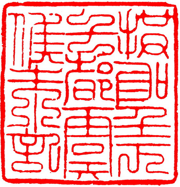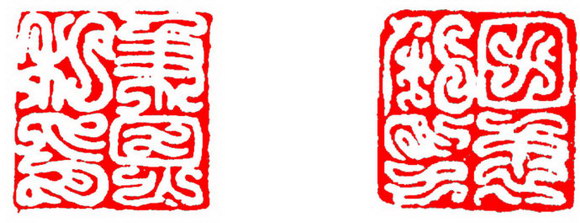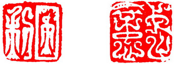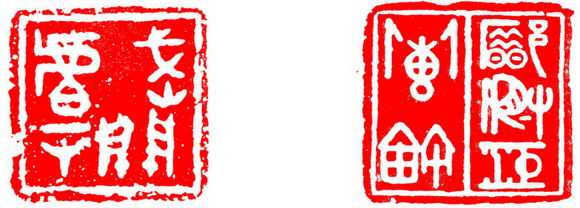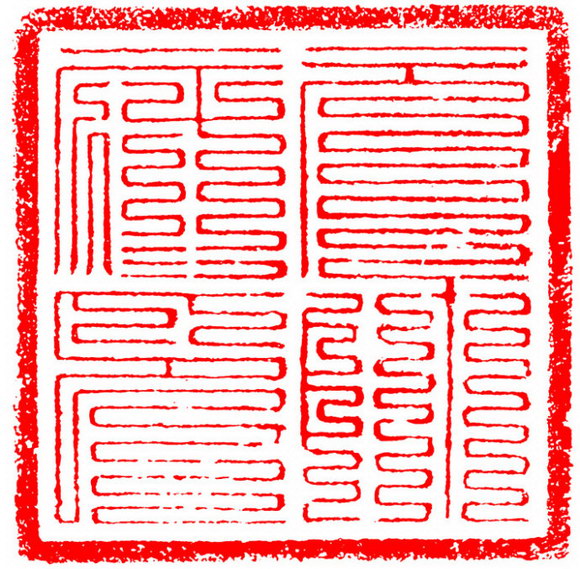 朱白文私玺,在印文的处理中,更是是利用了各国文字不一的特点,注重印面空间的疏密效果,对文字笔画进行搬移、挪让、合拼,有些文字后来已被否定,但有些文字的处理则出奇制胜,一些私印又与形式多样的几何图形印面结合,使印章更显示出奇逸清丽的艺术特征。
