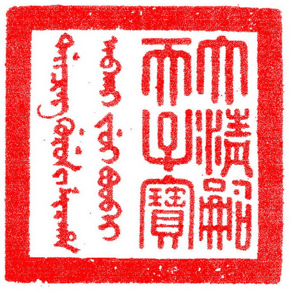 满文印出现在清代的官印中,有半为汉文篆书、半为满文的;亦有半为汉文篆书、半为满文九叠篆的;还有篆文、满文和篆体化满文三种字体合一的印章。