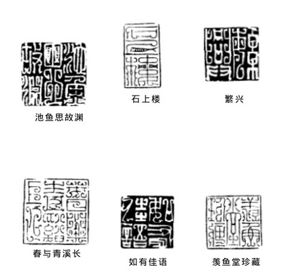 鞠稚儒:鸟虫篆印结字屈曲迂回,间饰以鸟头夔形增其趣,环合之际,不使滞塞凌乱而展读无绪。尤重区别于单纯图案化。线条无论粗细、转折、顿挫、残并等,深寓笔情墨趣,万变不离其宗,领略古人成印矩度。