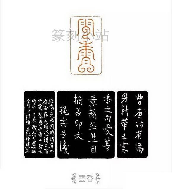 书法以篆隷入手,而后楷行,于《石鼓文》、《曹全碑》、褚、欧、颜诸体用功最勤。行草取径二王。篆刻宗秦法汉,旁参明清以降诸流派,有得于王福庵、陈巨来二家家法。所治小印,细金文印尤别出心裁,刀法精到,古艳隽丽,为印坛所称许,式熊先生曾誉之以“精妙绝伦,叹为观止”。