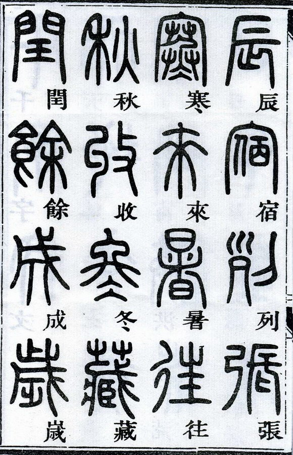 清包世臣在《艺舟双楫》中称:“完白山人篆法以二李(李斯、李阳冰)为宗,而纵横阖辟之妙,则得之史籀,稍参隶意。杀锋以取劲折,故字体微方,与秦汉瓦当额文为尤近。”邓石如因其杰出的艺术贡献,被后世称为“篆书的第三个里程碑”。