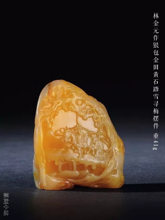 当然银包金的田黄作为田黄中的上品,它们不但在色差上做到了极致,还能演绎通透之美,这是其他石种所无法比拟的。若是在二者的基础上,再导入萝卜丝,必然是触及身心受触的最高愉悦点。