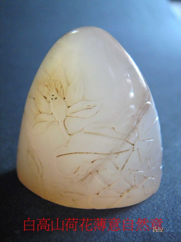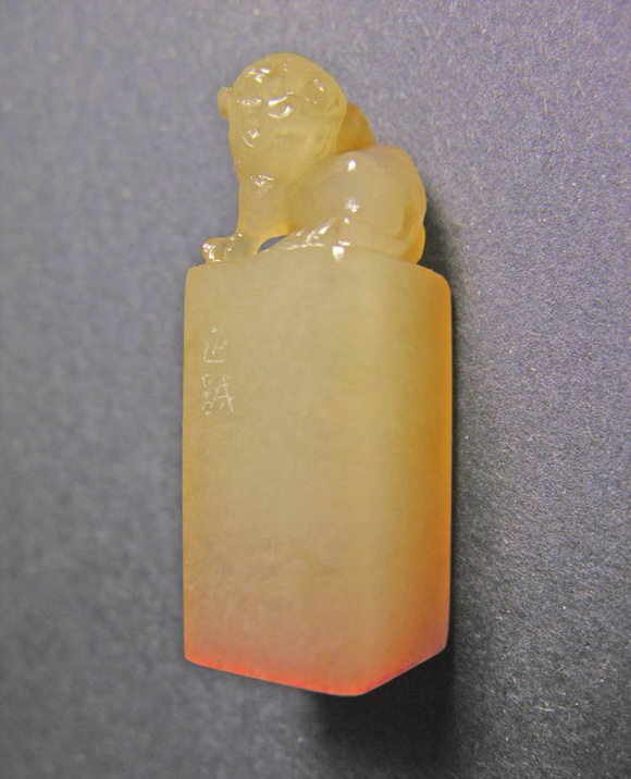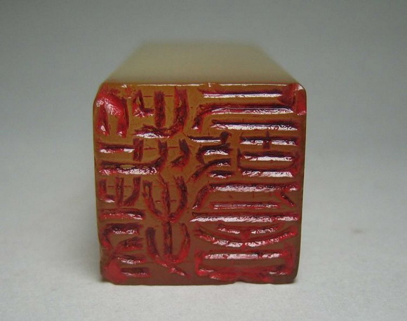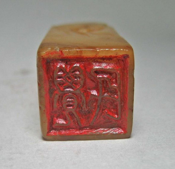 1. 如是曾經使用的章, 印面必然浸染了印泥中的印油, 印面比印石的其他部份更通透, 越是經常使用, 浸油越多。 長期使用的印章, 印面更見通透, 縱然是將舊印文磨去, 亦會殘留印油在印面。