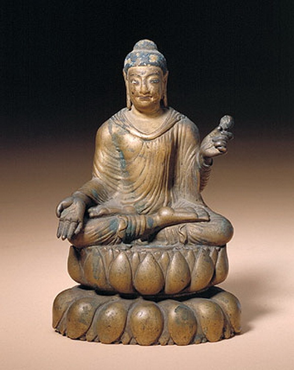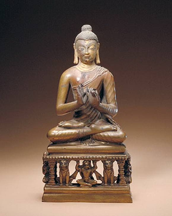 释迦牟尼佛坐像,6-7世纪 北印度 黄铜 高28.5cm