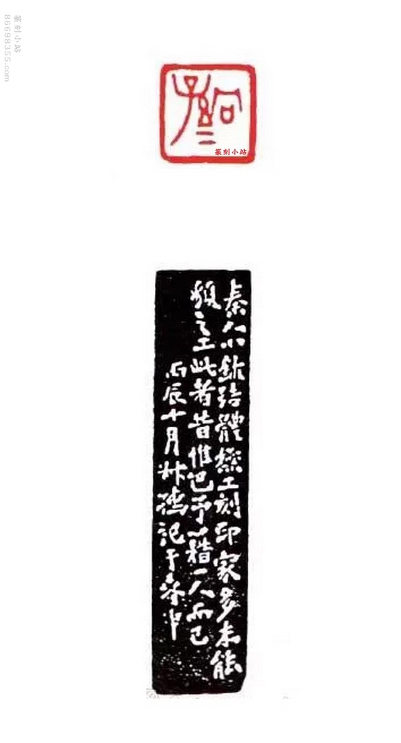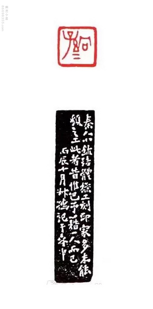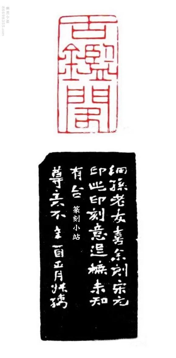 秦人小玺结体极工。刻印家多未能貌之。工此者昔惟巴予籍一人而已。丙辰十月。叔孺记于春申。( 孙边款)