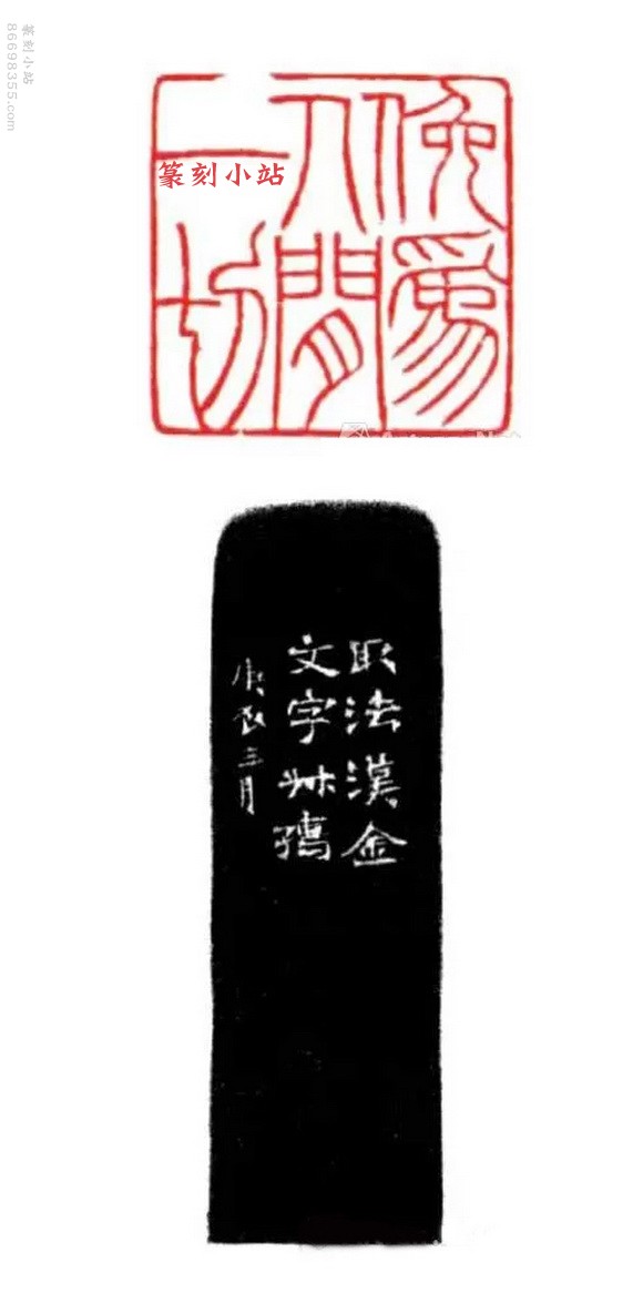 此印拟汉凿,近人吴苦铁何如?叔孺问德兄法家。戊寅十月。(庚辰德父边款)