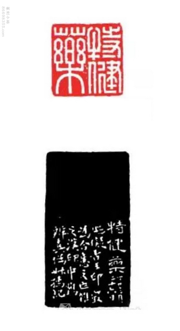 此拟古玉印最为合意之作,杂之汉印中难辨真伪。叔孺记。(特健药边款)
