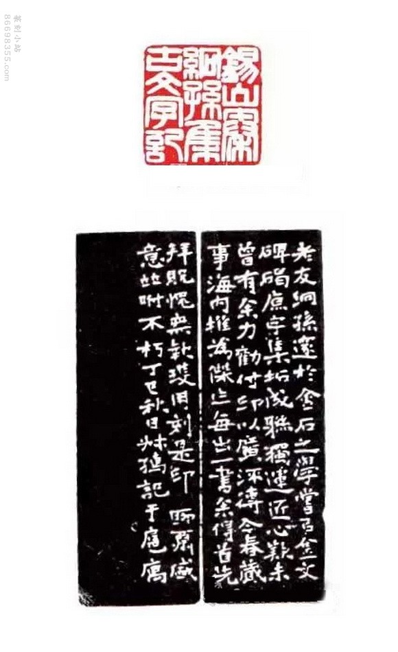 叔孺仿汉得意之作,刻奉辅兄法教。庚申。(丁辅之边款)