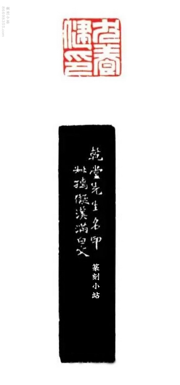镜铭文字变化多端,历来印家以之入印者少。赵叔孺为洪承祓刻印其款曰:“汉镜铭文字秀劲,取其法以治印。” 叔孺所在意者在“秀劲”二字,这种主动追求“秀劲”的艺术思想终叔孺一生一直是贯彻到底的。“饱香室”“原名斝” 自题曰:“取法新室镜铭”,其实还多简书笔意,如“斝” 的最末一笔向右下趋势与“名”呼应;“原名”整体靠上方, 下部空间空出,“斝”上部空间空出,这种章法其实还是属于古玺常见的,叔孺活用之。整方印章线条细劲挺拔,恰好是应验了赵叔孺所提倡的“秀劲”宗旨。