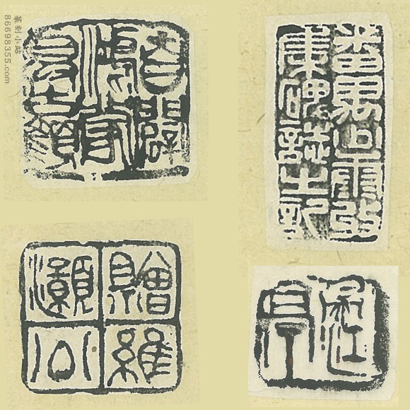 他的篆刻初从浙派,邓顽白派入手,继而直追秦汉,封泥,再研究当时之吴(昌硕)齐(白石)。在艰苦而漫长的艺术探索道路中,他终于悟到,只有印外求印,才能达到崇高的艺术化境。由此,他进而以刀为笔,以石为纸,以金石碑帖字体入印,在商鼎、铜器、汉砖、瓦当间参悟刀法,从绘画章法、书法行气中参悟结构。这样,他终于打破了印的方园樊笼,解脱了西泠八家的刀法,发展了吴齐的篆刻。形成了自己独特的艺术风格。他治印的风格有雄强、遒劲、苍秀、婀娜、方寸之间具有无穷无尽的艺术感染力。