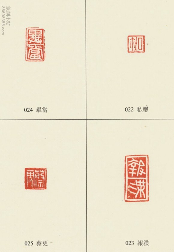 此谱断代、释文、序列多赖施谢捷教授指教、赐助。排序以官印、私•印、成语印、图纹印为次,同一类别以时代为次。私印中以单姓名 字、複姓名字、单字姓、单字名、双字名为次。全部图版均为原大。