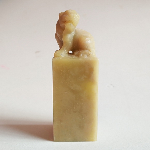 3.如果只在一面刻边款,丁面刻边款。此时,印面上的字体,甲面为上——即倒置后,狮子双前爪为上面。
