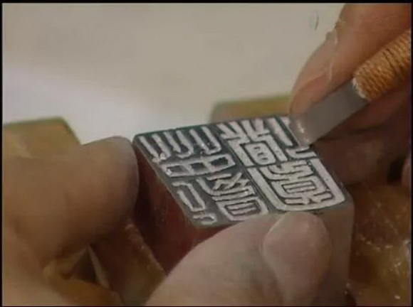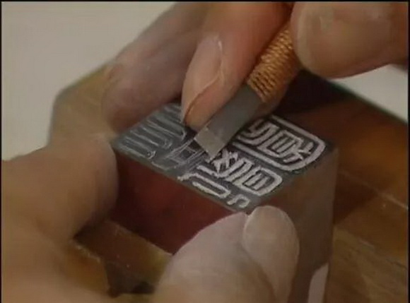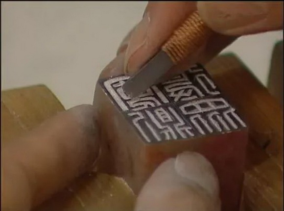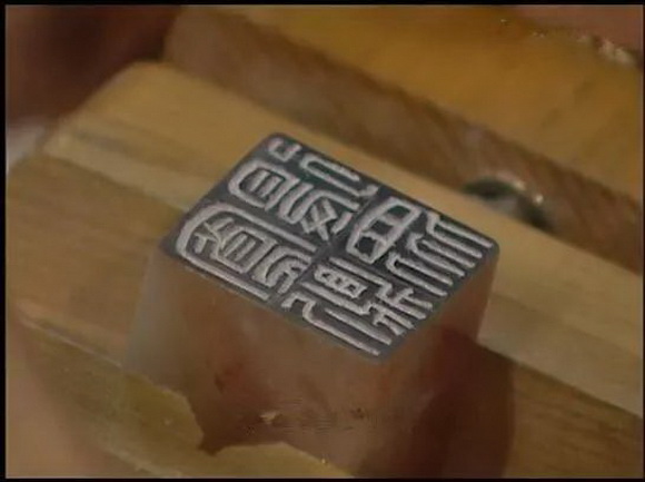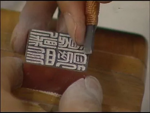 在上述第三步的基础上,我们初步将笔画都刻完了之后,接下来就是逐字篆刻,加宽加粗到自己理想效果,细心收拾线条的起收笔和质感,要注意的是用刀尽量做到一气呵成,不要过分的刮削,导致线条有力变为无力。