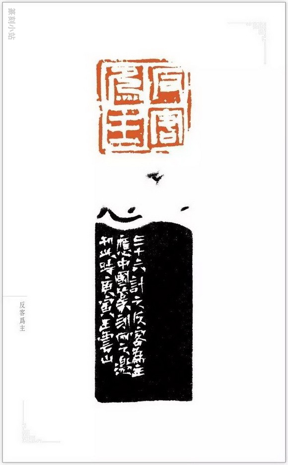 边款:三十六计之反客为主。应中国篆刻网之邀刊此。时庚寅,王云山。