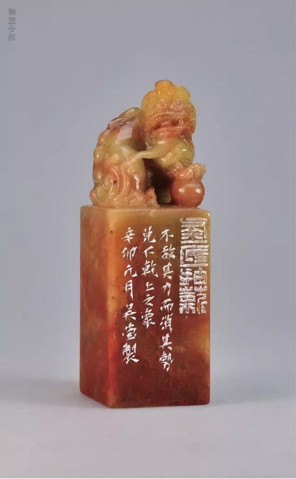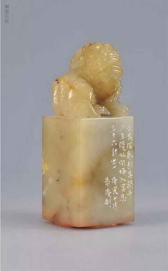 尺寸:3.3×3.3×8.8cm; 印材:巴林彩冻