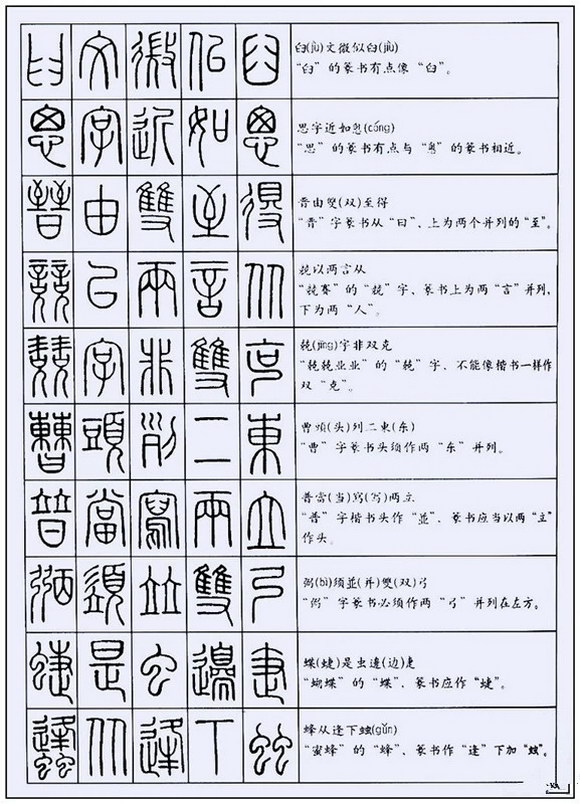 《篆法百韵歌》原为清代沙青岩所撰,对初学篆刻治印者掌握篆法规律、深入学习篆书、探究文字来源很有帮助。《篆法百韵歌》原作一百多韵,这里剔除了少数冷僻内容,集成一百韵,并试将原注释文字改写得通俗易懂些,有条件的朋友可以对照《说文大字典》所收原文,以能熟记辨识为佳。