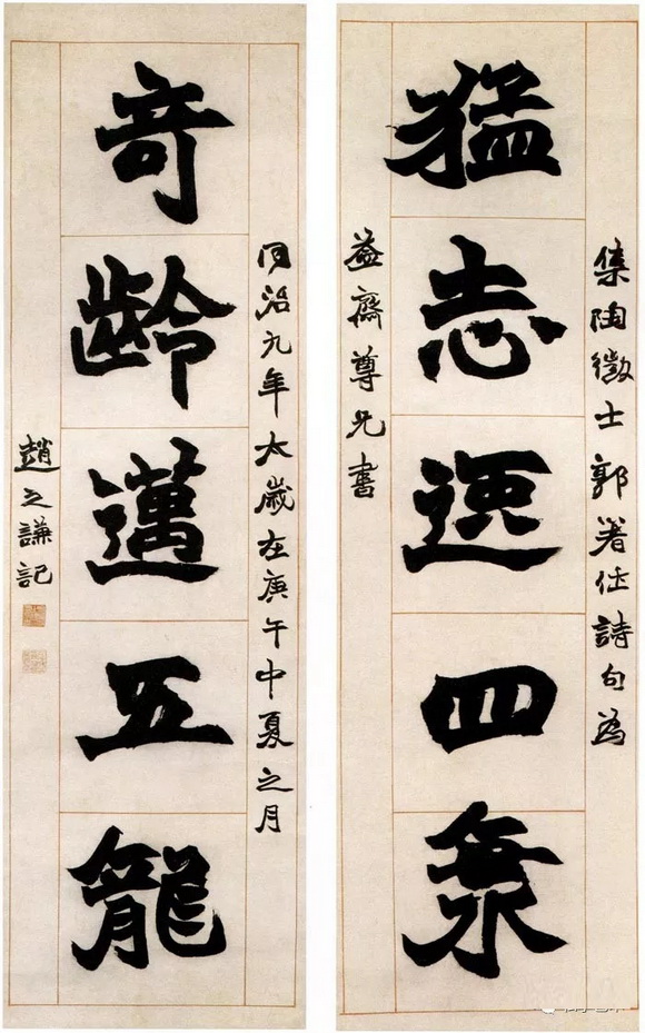 赵之谦书法 楷书猛志奇龄五言联 北京故宫博物院藏