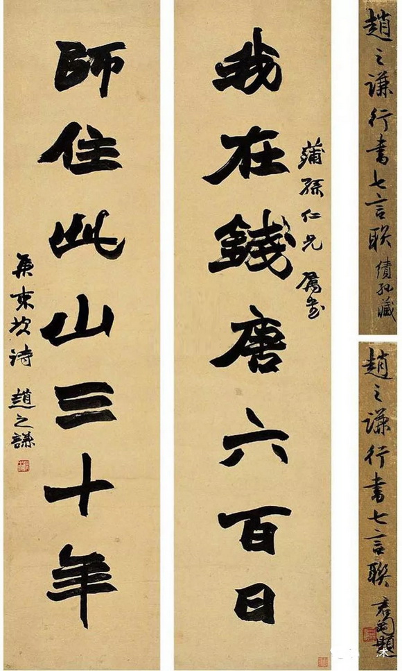 赵之谦书法 节花延年,行书七言联中堂