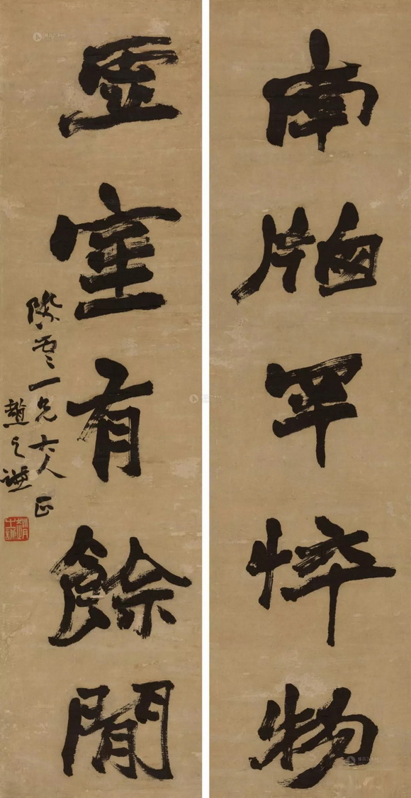 赵之谦书法 行书五言联 水墨纸本