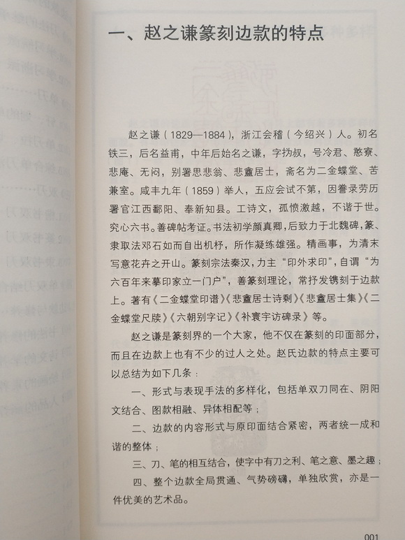 赵之谦边款技法大全,32开198页定价38元,选取印蜕157方,边款386面,从赵之谦篆刻边款的特点入手,介绍了篆刻其作品中边款的几种格式,相应的款向、款式和谦词的写作方法,之后,详细阐析了赵之谦边款的内容、章法以及刀法,具体详尽,条理清晰,阐述系统,相信对于读者了解赵之谦的边款会有极大的帮助。