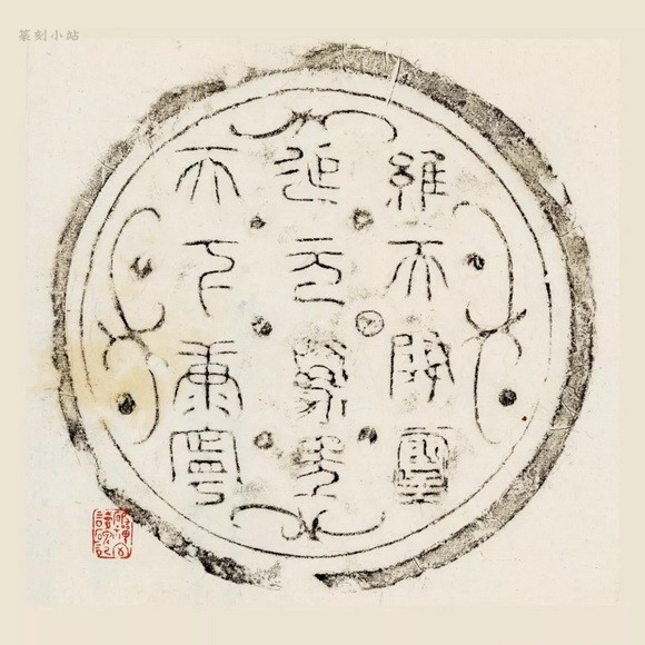 昔游华阴汉魏故城,手撷汉瓦残片于田陇之间,乃知“与崋无极”“与崋相宜”瓦多出于今华阴仿车、五方、王道三村,鉴宇考证其地有汉之华苑也。诸村凡出“长生无极”“千秋万岁”“传富昌当”“延寿万岁”及云纹瓦当千余枚,最珍异者,五方村所出“崋苑”二字瓦,又一瓦其背有匠人杨宽题名,又有一范而同文者。近岁长安弄瓦者众,村人多暇,挖掘无复虚日。余先后得“与崋无极”瓦二枚,“与崋相宜”“与崋无极”拓片二十余纸,无一同者。断缺磨灭,反增雄秀。团娈变化,随拓手轻重面貌各殊,莫可端倪。邓完白取其体势错落,施以柔翰,变出新风,摹诸篆刻,汉瓦之为功用,于斯为大矣。丁酉(2017)七月十三日雨窗,巡斋。