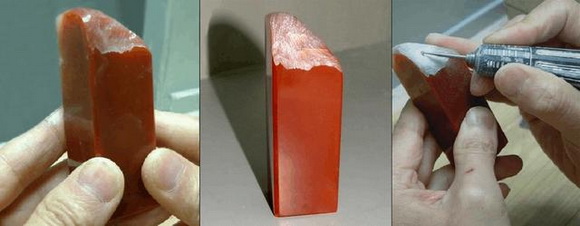 第一步:起台。所谓台者,即印章的平台,平台以上刻钮,平台以下,方方正正完整无缺。