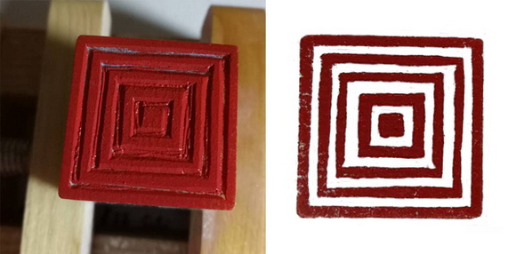 刻完回字,并不代表可以钤印看效果了,还要在没有清洗印面墨迹之前认真加以修整,这个阶段花的时间应当不少于施刻阶段。当然,这可能算不上作品,但却会因为处理的精细,最后钤出较好的效果,从而使自己的兴趣大幅提高,而不是刻出了很糟的印面,灰心丧气。
