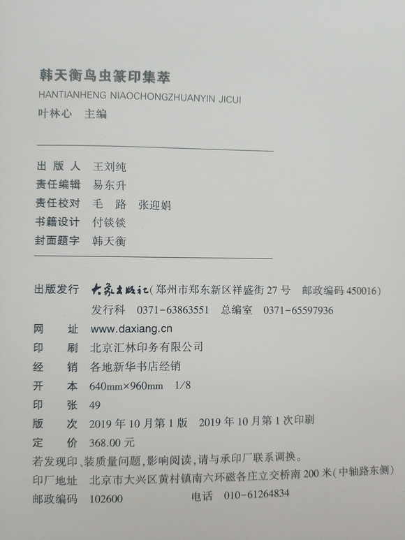 三十五年来最杰出的篆刻家,韩天衡鸟虫印集粹,印蜕边款释文,部分附印石印面高清照,收录鸟虫篆印200余方,印文字飞动流美,绚丽缭绕。铜版纸大16开370页,定价368元。