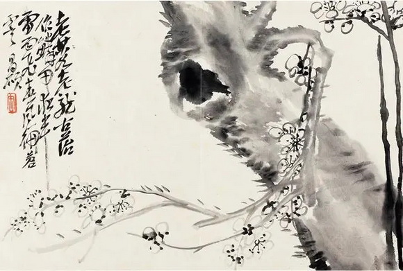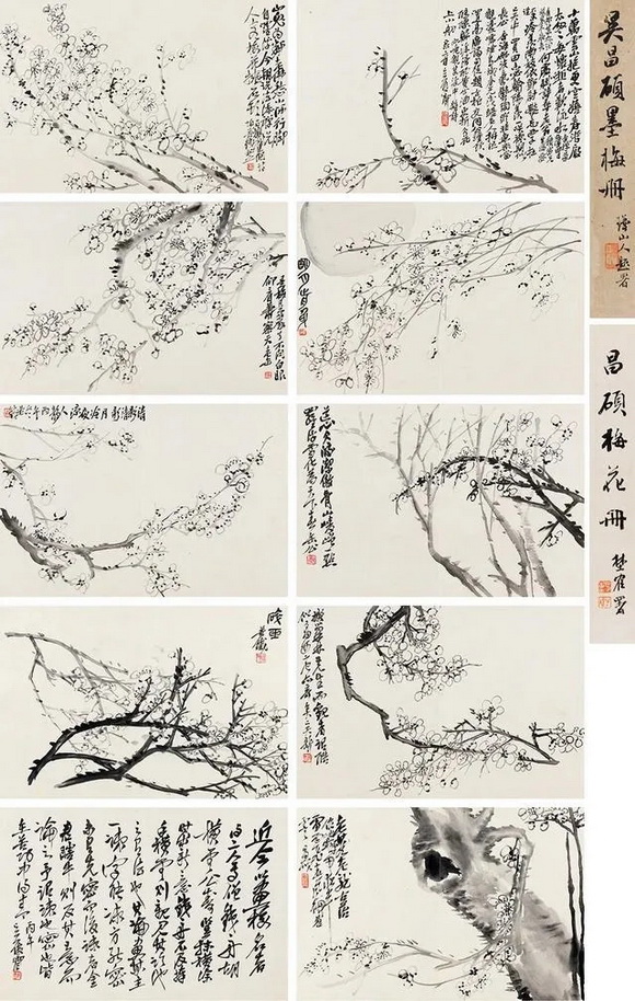 吴昌硕一生作画万余,而以画梅花最多、最精,也最能表达其心意、技艺。他自谦云,三十学诗,五十学画,其实传世的作品中早年三十多岁时就画过梅花,四十以后梅花作品多见,这也表明他学画是从画梅花入手的。