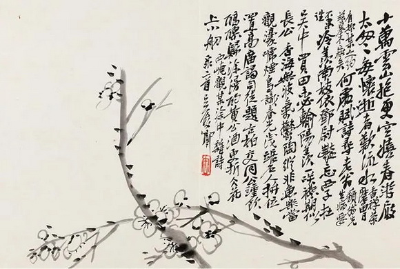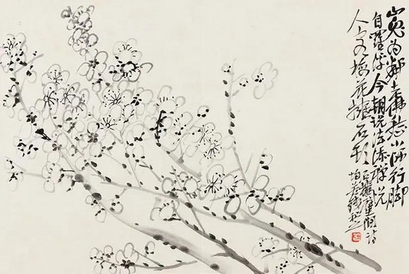 他在诗中写道:“卅年学画梅,颇具吃墨量。醉来气益粗,吐向苔纸上。……”也知其画梅花用功之勤。