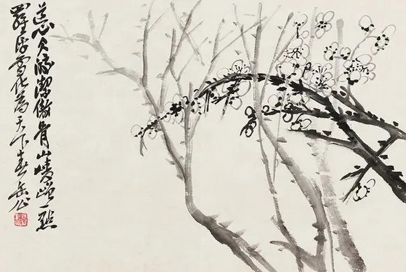题识:道心冰皎洁,傲骨山崚嶒。一点罗浮雪,化为天下春。缶公。